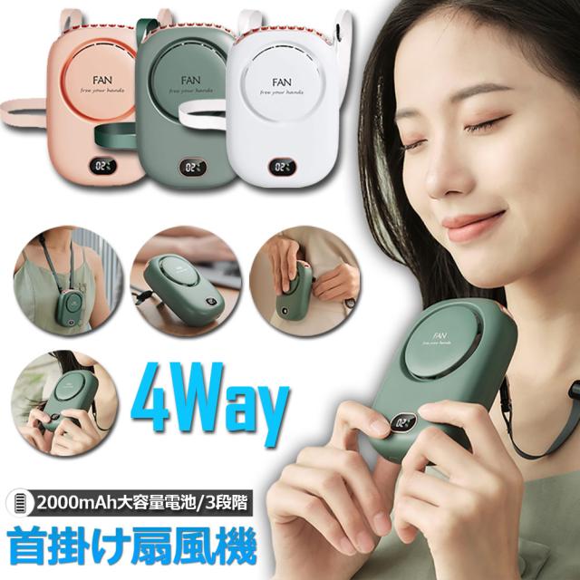 【上部から送風 多功能の携帯扇風機】首にかけるだけで両手がふさがることなく風を送ることが出来る首かけタイプの携帯扇風機が新登場。携帯扇風機、首掛け、腰ベルトファン、卓上に置くの4つの使い方。暑さが厳しい日に、首元を冷やすことで一層涼しさを体感でき、特にマスクをして外を歩いても蒸れ感がだいぶ軽減され、熱中症防止にもなってくれます。