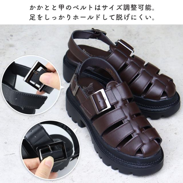 グルカサンダル レディース アンクルストラップ おしゃれ かわいい 厚底 No.1546 22.5cm〜24.5cm 黒 ブラック LOVEHUNTER ラブハンター