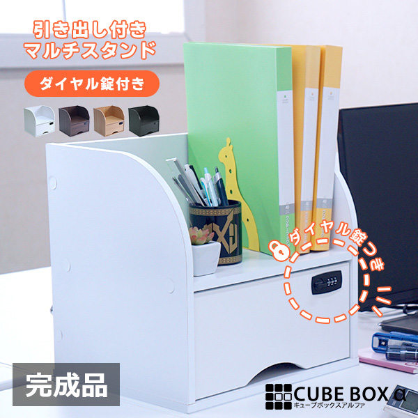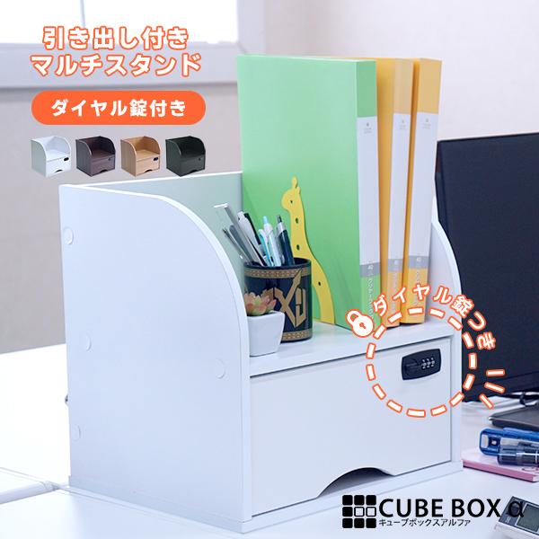 完成品 ダイヤル鍵 引き出し付き ファイルスタンド キューブボックスα 送料無料 鍵付き 収納ボックス 卓上 A4ファイルラック 木製 デスク上収納 ブックスタンド 卓上チェスト おしゃれ マルチスタンド 卓上ラック 小物収納 ダイヤル錠