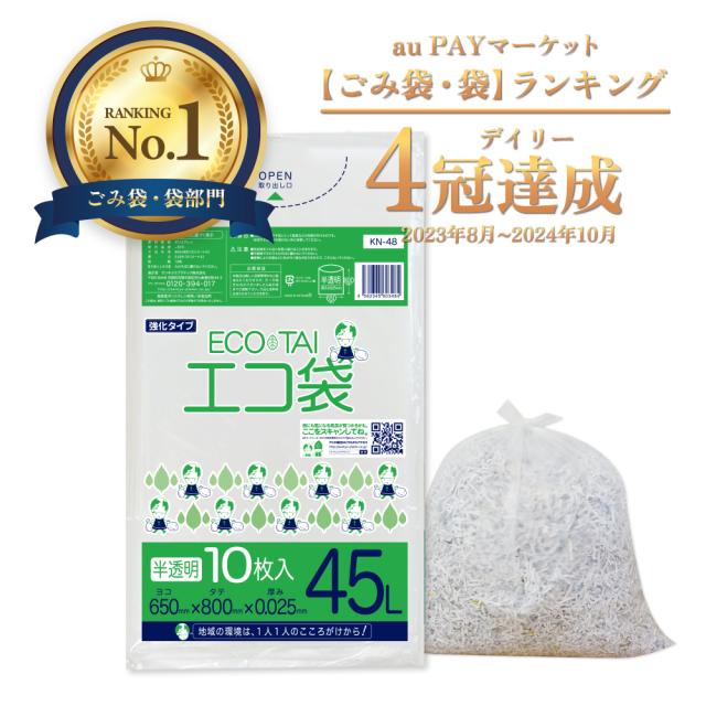 ポリ袋 ゴミ袋 45リットル 半透明 65x80cm 0.025mm厚 10枚x70冊 KN-48 ごみ袋 袋 45l ナチュラル 送料無料 サンキョウプラテック