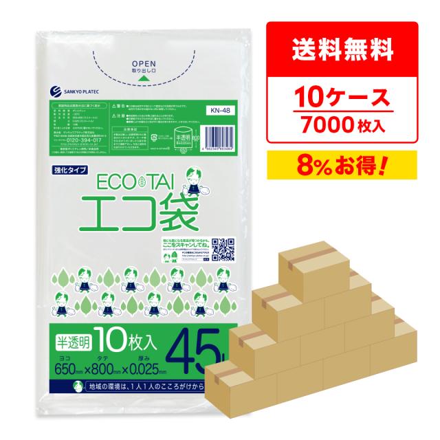 ポリ袋 ゴミ袋 45リットル 半透明 65x80cm 0.025mm厚 10枚x70冊x10箱 KN-48-10 ごみ袋 袋 45l ナチュラル 送料無料 サンキョウプラテック