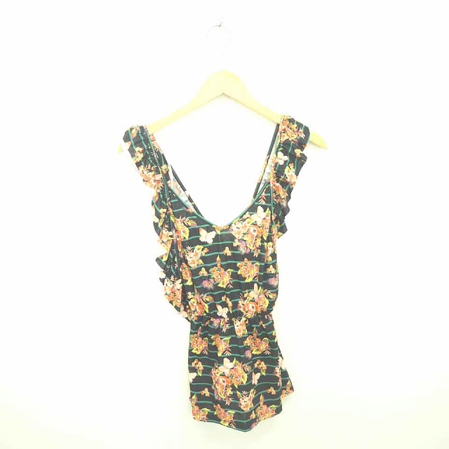 【中古】フラワー FLOWER チュニック ワンピース 花柄 ボーダー フリル ノースリーブ ブラック オレンジ 黒 /TT34