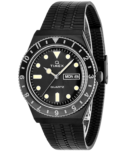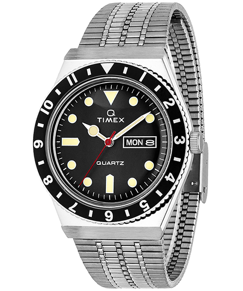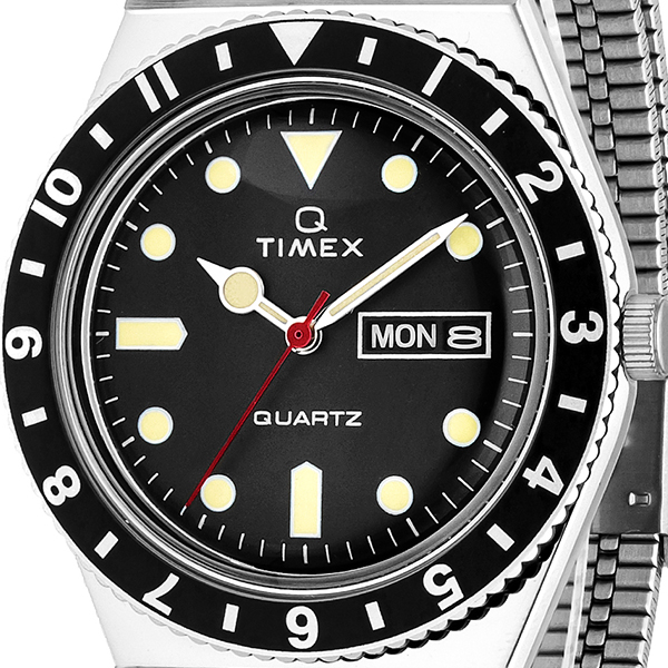 機械式から電池式(クオーツ)へ本格的に移行する時期に発売された同モデルが人気となった理由は、アルマイト加工の回転式ベゼル、コインを使ってユーザー自身で電池を交換できるハッチ・ケースバック構造、織り込みのステンレス・スチールブレスレット、そして当時先端技術であったクオーツ・ムーブメントの頭文字”Q”を文字盤のブランドロゴの上に配したダイアルなど、当時のディテールをそのままに再現している点です。