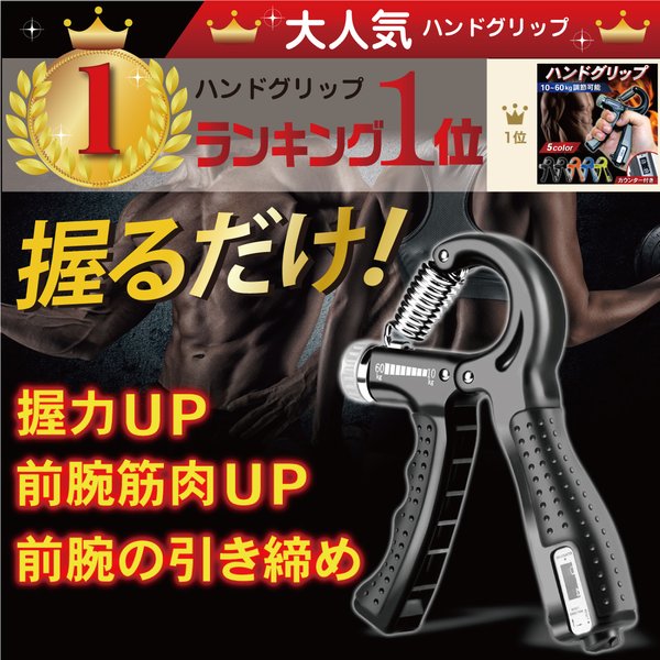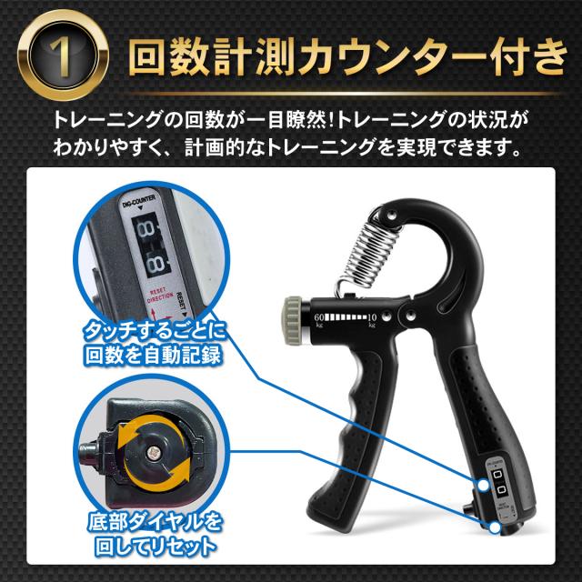 ハンドグリップ グリッパー 調整可能 握力 器具 強力 負荷 トレーニング 効果 筋トレ エクササイズ リハビリ フィットネス ジム スポーツ 家トレ カウンター付き 前腕 鍛える 筋肉 10kg 20kg 30kg 40kg 50kg 60kg リノウル
