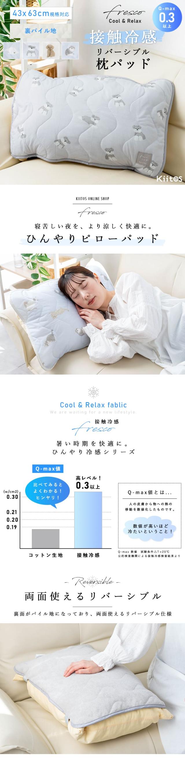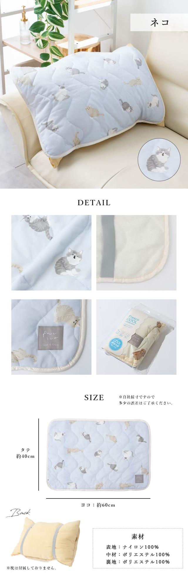 枕パッド 43×63cm 接触冷感 ピローパッド ひんやり 冷たい クール 冷感 洗える 洗濯 Q-max 動物 アニマル Freszo フレスコ 枕カバー 夏用 暑さ対策 おしゃれ かわいい 子供 キッズ インテリア プレゼント