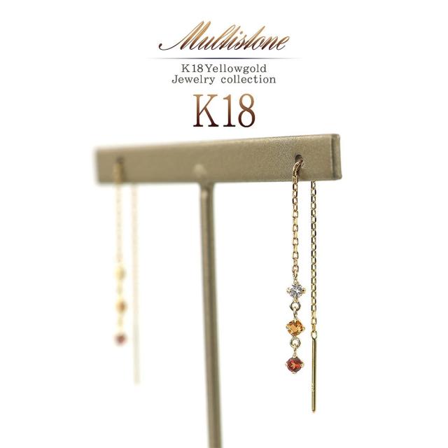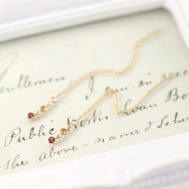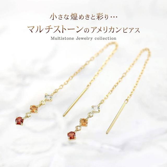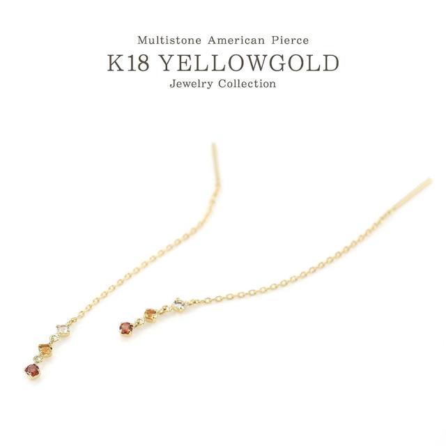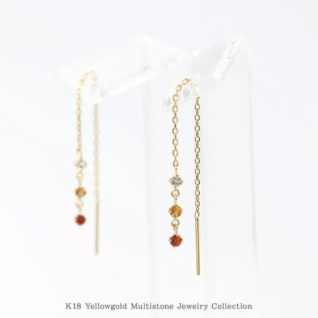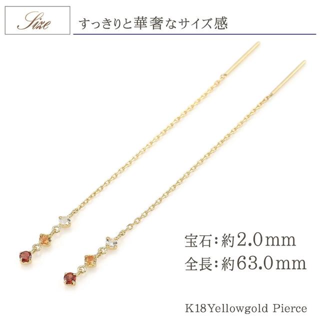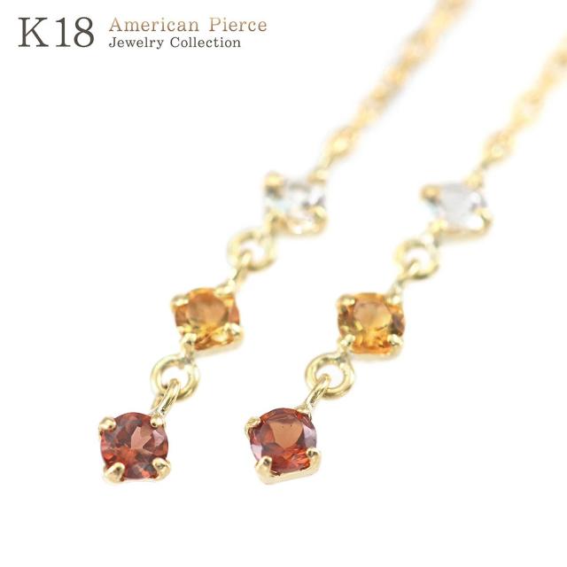 チェーンピアス レディース アメリカンピアス 18金 イエローゴールド ガーネット シトリン ホワイトトパーズ 揺れる ピアス K18 18K 宝石 ロング 長い 長め ゆれる プレゼント 誕生日 記念日 ギフト 贈り物 アクセサリー ジュエリー 女性 彼女 嫁 本物 母の日 ギフト 2026