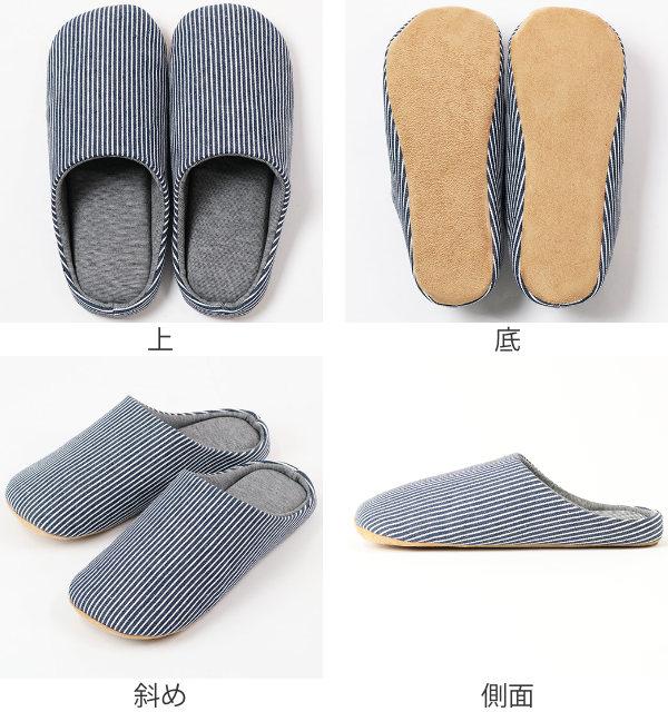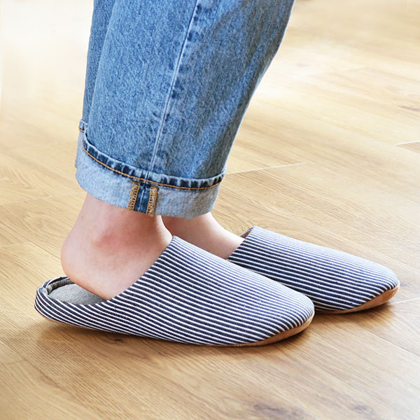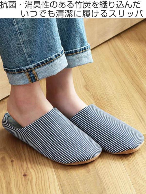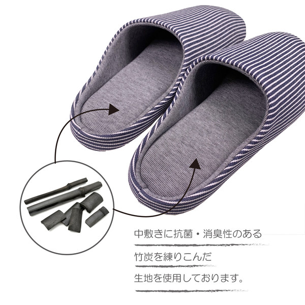 スリッパ L 26〜27.5cm 抗菌 消臭 竹炭 メンズ レディース ( ルームシューズ ルームスリッパ 室内 チャールスタイプ 前詰まり 吊り込み 静穏設計 来客用 ボーダー柄 部屋 部屋履き )