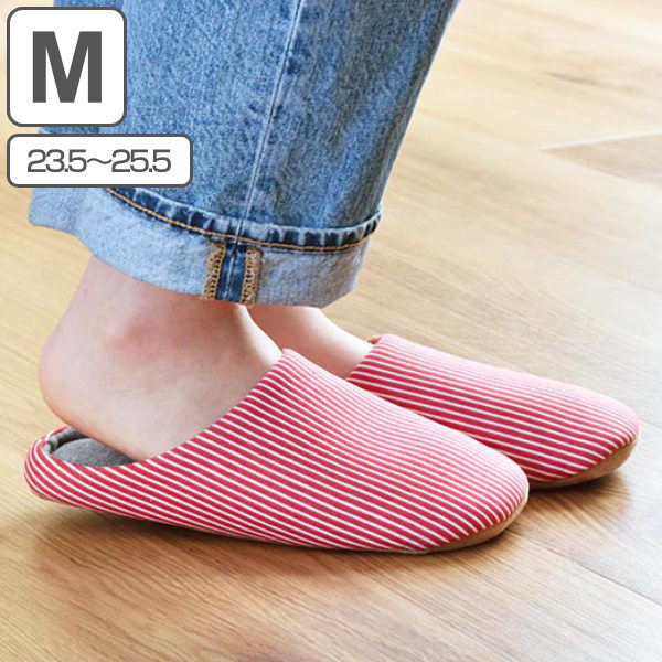 スリッパ M 23.5〜25.5cm 抗菌 消臭 竹炭 レディース ( ルームシューズ ルームスリッパ 室内 チャールスタイプ 前詰まり 吊り込み 静穏設計 来客用 ボーダー柄 部屋 部屋履き )