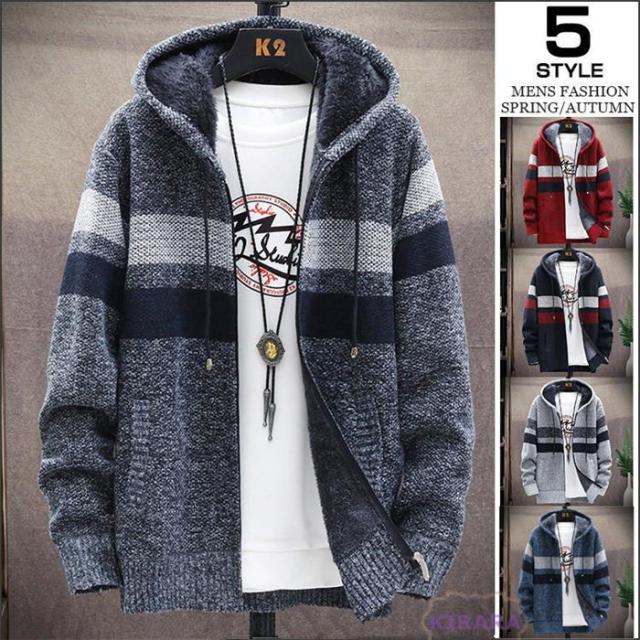 カーディガン メンズ ニットジャケット 厚手 裏ボア 暖かい カジュアル ニット セーター 秋冬物 トップス 防寒 防風 アウター フード付き スリム おしゃれ ニットジャケット 部屋着 ルームウェア アウトドア カットソー