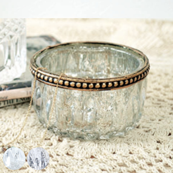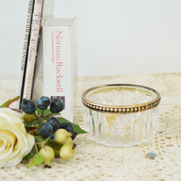 金色の縁が魅力的なビンテージ風の小物入れです。少し丸のあるフォルムが可愛いらしいです。リングやピアスなどのアクセサリーを入れたり、ドレッサーやチェストの上に置けばお部屋のアクセントになること間違いなしです。