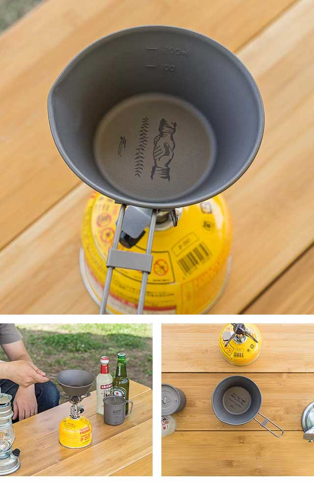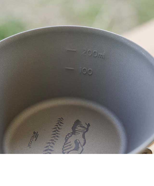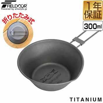 FIELDOOR チタン シェラカップ 300ml 目盛付き 直火OK 折りたたみ フォールディングハンドル チタンカップ コップ チタン製 軽量 コンパクト キャンプ用食器 器 皿 キャンプ飯 アウトドア バーベキュー キャンプ用品 ツーリング おしゃれ 送料無料