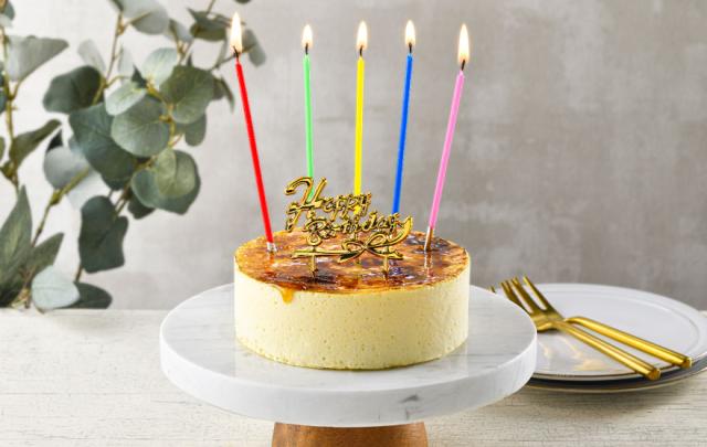 ろうそくとゴールドのバースデーピック付きです。ケーキを冷蔵庫で解凍していただきましたら、すぐにお祝いできます。