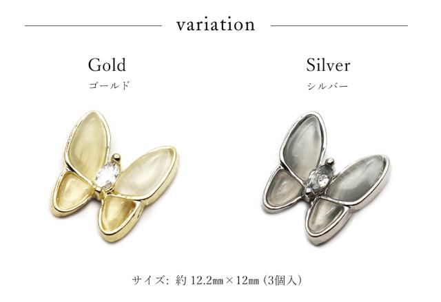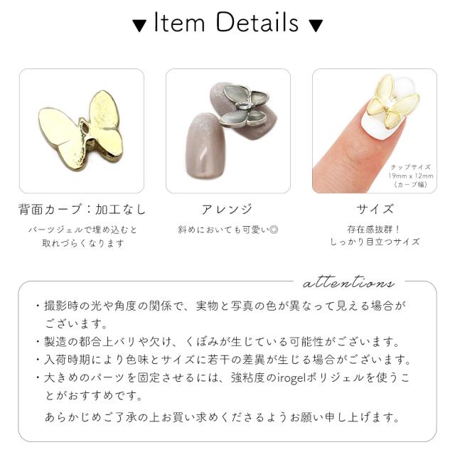 ジルコニア製 フレームバタフライパーツ[ゴールド/シルバー] 3個入 おうち時間 ジェルネイル