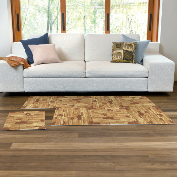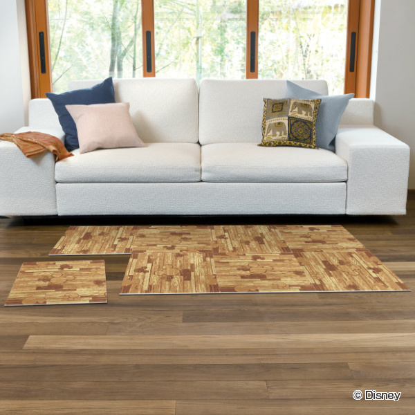 タイルマット 45×45cm ミッキーマウス ウッド 4枚入 ( 吸着マット 吸着タイルマット ジョイントマット 木目調 置くだけ ズレない 2mm 薄い 洗える 清潔 子ども ペット お年寄り 安全 簡単 ミッキー )