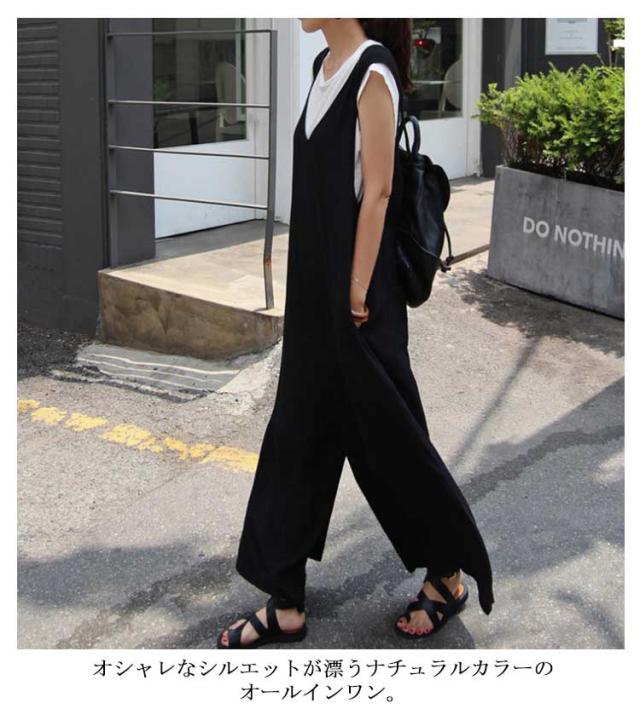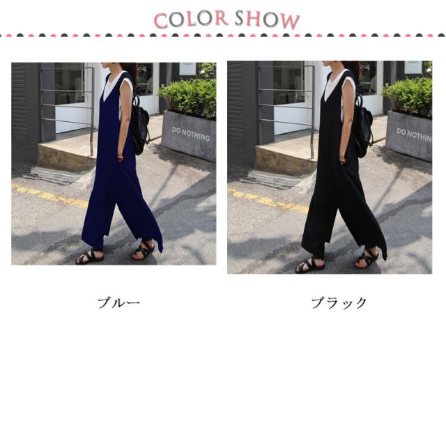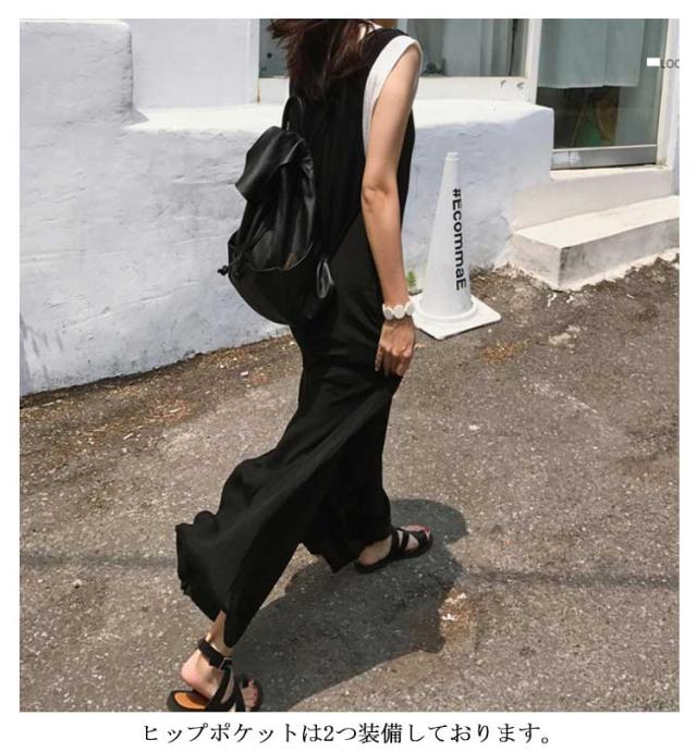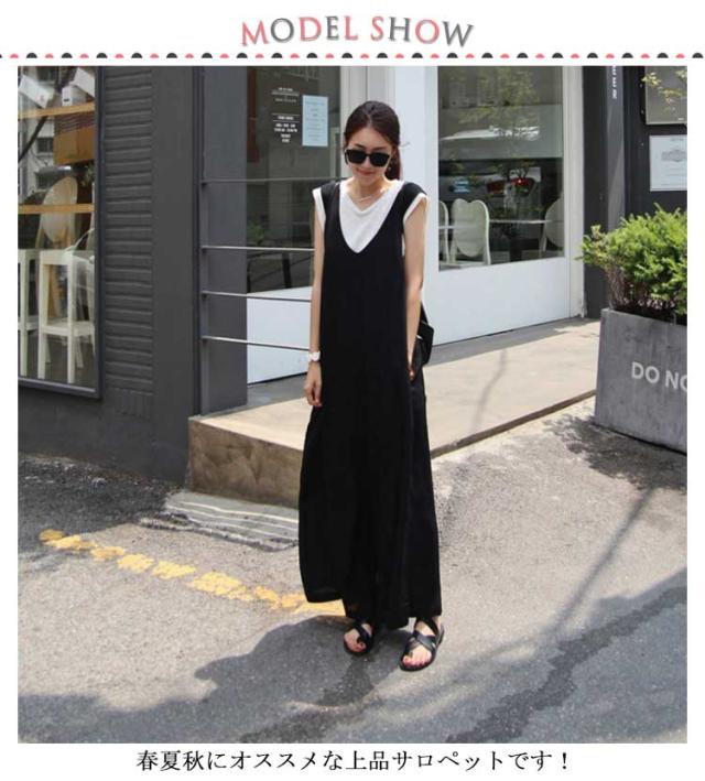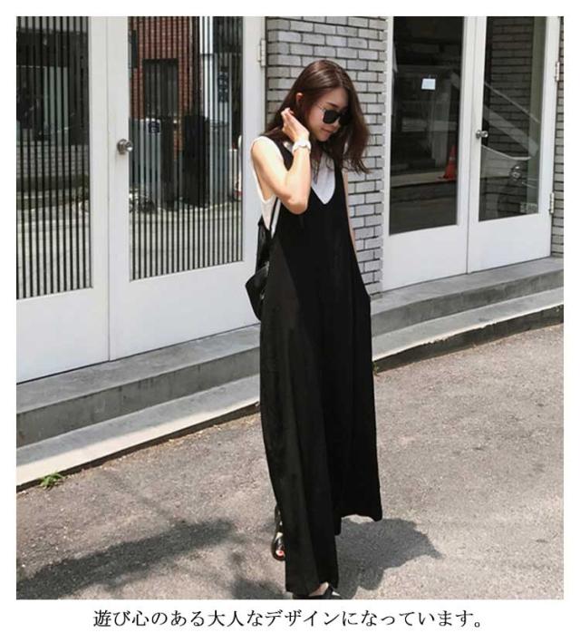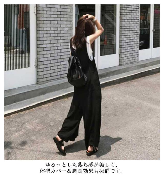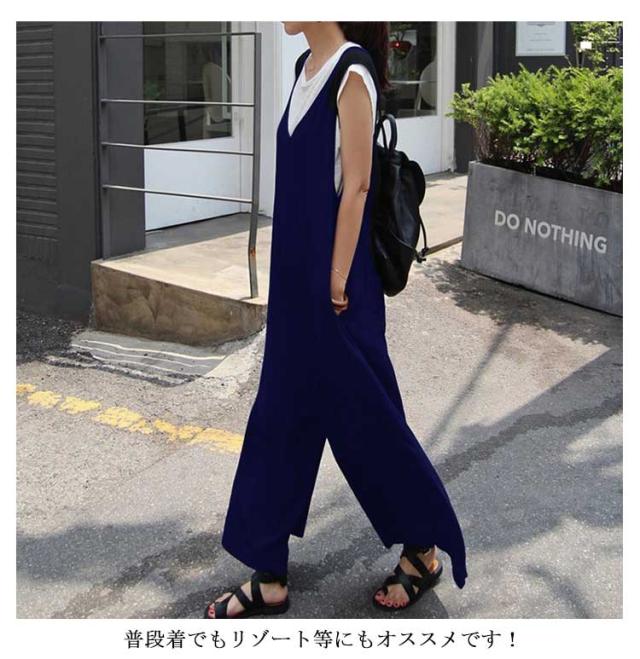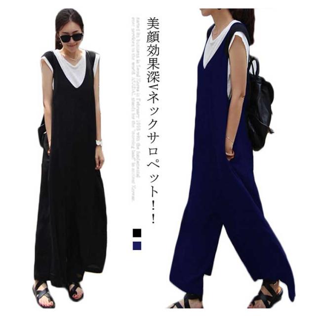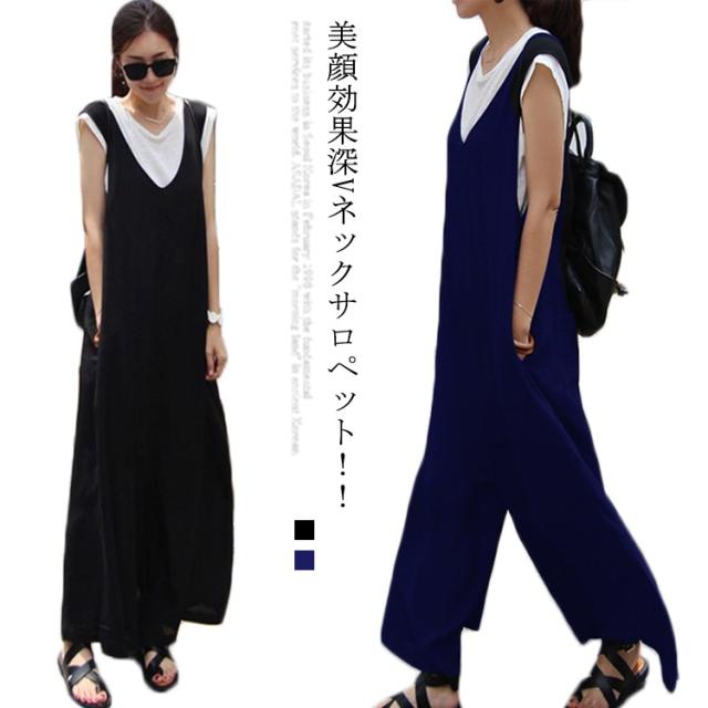 送料無料 サロペット レディース 春夏 きれいめ 大人 九分丈 ロング丈 パンツ オーバーオール カジュアル かわいい おしゃれ ワイドパンツ ガウチョパンツ vネック