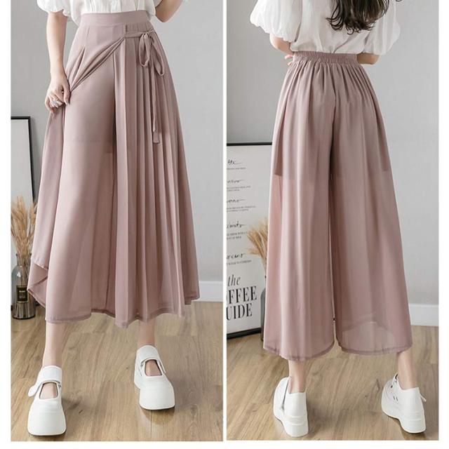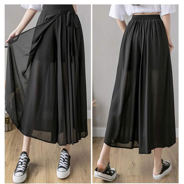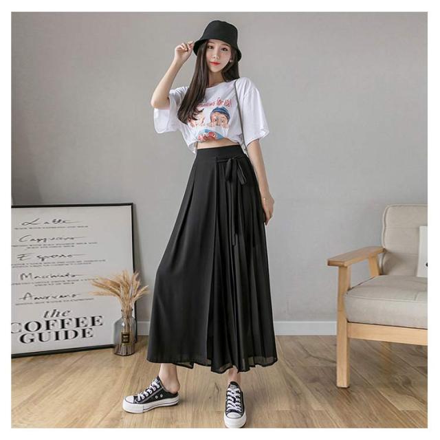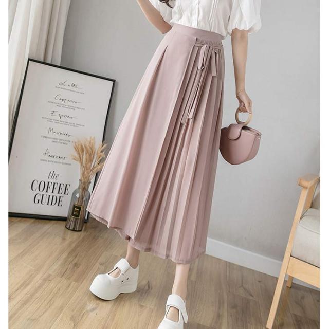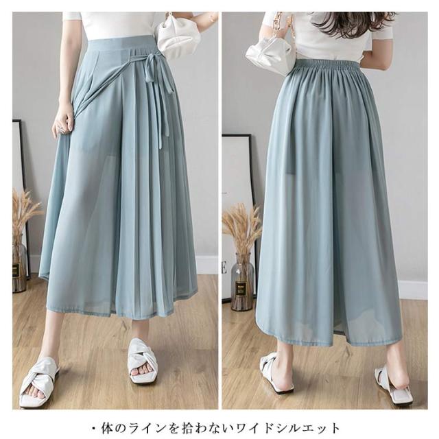 送料無料 ロングスカート マキシ丈スカート フレアスカート ワイドパンツ 低身長 高身長 体型カバー プリーツ ウエストゴム 春夏 30代 40代 50代