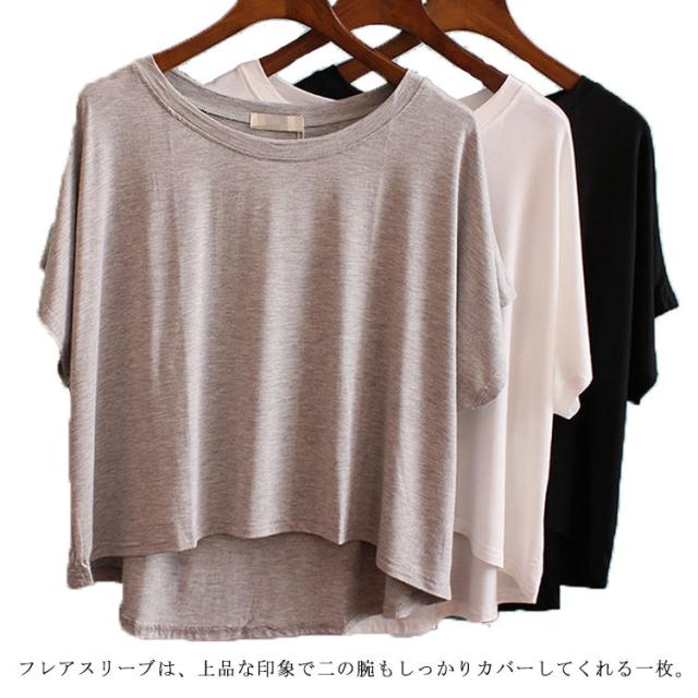 Tシャツ 半袖 カットソー レディース フレア フリル ボーダー トップス 送料無料 ゆったり 半袖 白 黒 ブラック ホワイト グレー 20代 30代 40代 50代