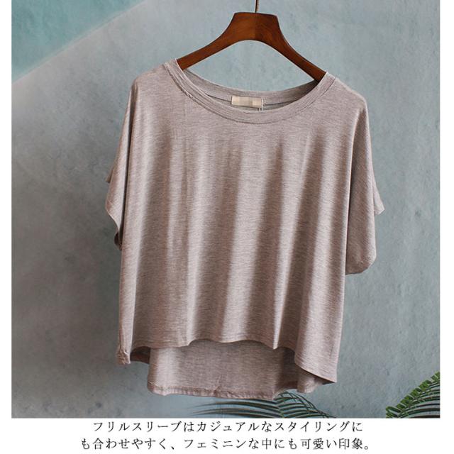 | フレアスリーブは、上品な印象で二の腕もしっかりカバーしてくれる一枚。 フリルスリーブはカジュアルなスタイリングにも合わせやすく、フェミニンな中にも可愛い印象。 前後の裾長さ違いが着こなしに奥行きと表情を与えてくれるポイント。 ゆったりとしたドレープが女性らしいシルエットを演出。 モダール綿を使用しているので、吸湿、保湿性に優れており、程よい落ち感のあるとろみ素材が魅力。 肌馴染みが良く、滑らかな質感が心地良い快適な機能性を兼ね備えた一枚です。 | |