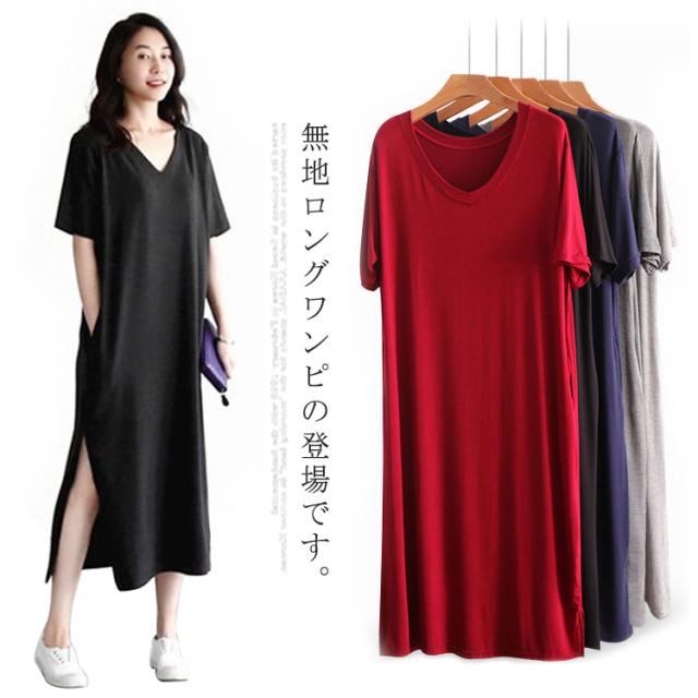 【送料無料】 Tシャツワンピース レディース カットソー インナー ワンピース ミディアム 大きいサイズ シンプル 無地 ロングTシャツ 半袖 インナー ルームウェア ゆったり