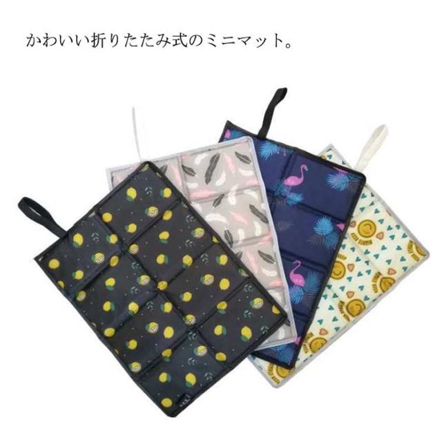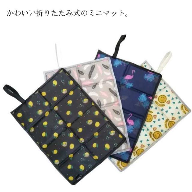 | かわいい折りたたみ式のミニマット。 適度な柔らかさでお尻が痛くならない。 スポーツ観戦やレジャー、お花見、バーベキューなどで使えます。 折りたたみできるので、お子様のリュックにもすっぽり入ります。 かわいいプリントで、プレゼント用におすすめします。 | |