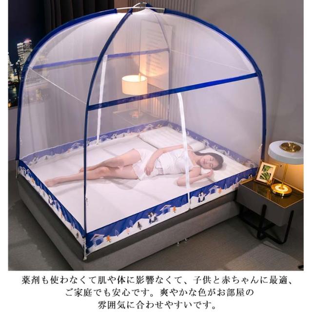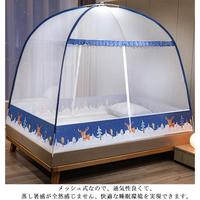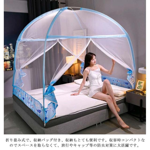 夏用必需品 360°全方位ガード 防蚊対策 ワンタッチ 蚊帳 大空間 蚊除け 自立式 ゆったり テント式 ムカデ 虫 蚊 モスキートネット 折りたたみ式 通気性いい 耐久 底付き 設営簡単 キャンプ 登山 旅行 収納便利 高密度 お洒落 1.2m 1.5m 1.8mベッド対応 収納袋なし