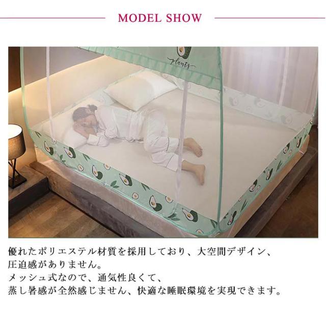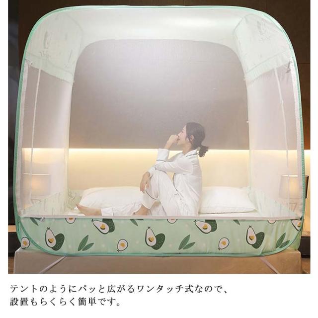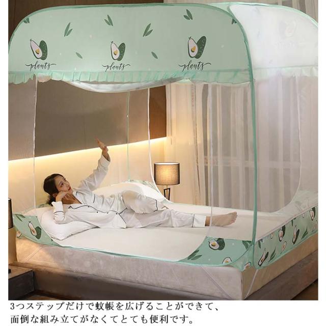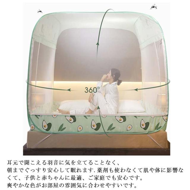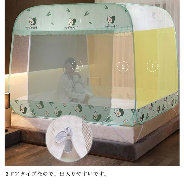 夏用必需品 360°全方位ガード 防蚊対策 ワンタッチ 蚊帳 大空間 蚊除け 自立式 ゆったり テント式 ムカデ 虫 蚊 モスキートネット 3ドア 折りたたみ式 通気性いい 耐久 底付き 設営簡単 キャンプ 登山 旅行 収納便利 高密度 お洒落 1.5mベッド対応