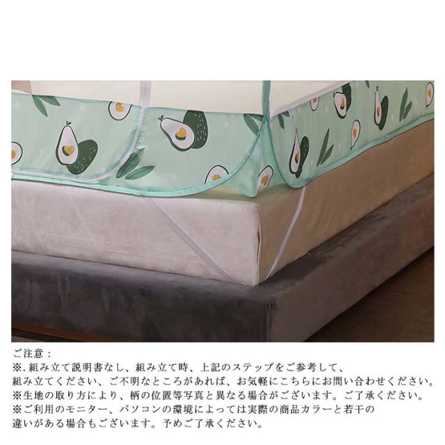 | 【商品名】春夏用のワンタッチ式蚊帳 【素材】ポリエステル 【サイズ】1.5mベッド適用 【ドア】3ドアタイプ 【底面】底面あり 【特徴】 ・【大空間、圧迫感ない】優れたポリエステル材質を採用しており、大空間デザイン、圧迫感がありません。メッシュ式なので、通気性良くて、蒸し暑感が全然感じません、快適な睡眠環境を実現できます。 ・【ワンタッチ式蚊帳、初めてでも簡単】テントのようにパッと広がるワンタッチ式なので、設置もらくらく簡単です。3つステップだけで蚊帳を広げることができて、面倒な組み立てがなくてとても便利です。 ・【高密度、蚊虫除け対策】網目が細かいので、嫌な蚊、虫などを全方位的にガードできます。耳元で聞こえる羽音に気を立てることなく、朝までぐっすり安心して眠れます.薬剤も使わなくて肌や体に影響なくて、子供と赤ちゃんに最適、ご家庭でも安心です。爽やかな色がお部屋の雰囲気に合わせやすいです。 ・【底生地付き】テントのように底面まで張れていて、外からも下からも虫や蚊から守れて、子供の転落を防ぎます。柔らかい生地で作られており、手触りが優しいです。 ・【3ドア】3ドアタイプなので、出入りやすいです。 ・【収納簡単、持ち運び便利】折り畳み式で、収納バッグ付き、収納もとても便利です。収容時コンパクトなのでスペースを取らなくて、旅行やキャップ等の防虫対策に大活躍です。 パッケージ内容:蚊帳本体×1 収納袋×1 簡単に組み立て可能: (1)自然的に展開する (2)四つの脚部を固定する (3)細かいところを整理する ご注意: ※.組み立て説明書なし、組み立て時、上記のステップをご参考して、組み立てください、ご不明なところがあれば、お気軽にこちらにお問い合わせください。 ※生地の取り方により、柄の位置等写真と異なる場合がございます。ご了承ください。 ※ご利用のモニター、パソコンの環境によっては実際の商品カラーと若干の違いがある場合もございます。予めご了承ください。 | |