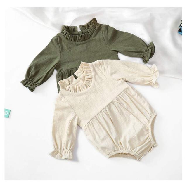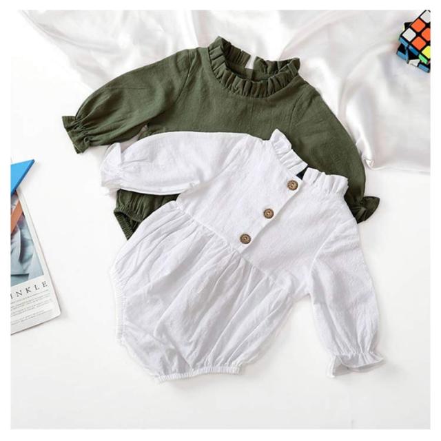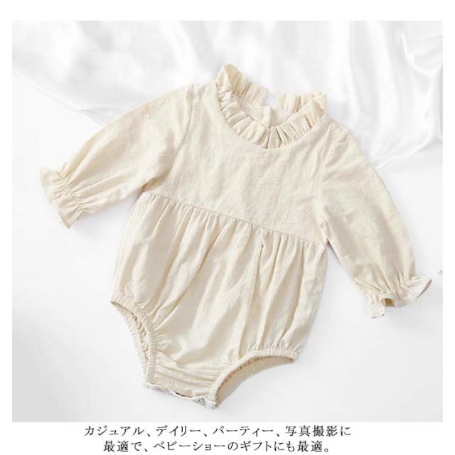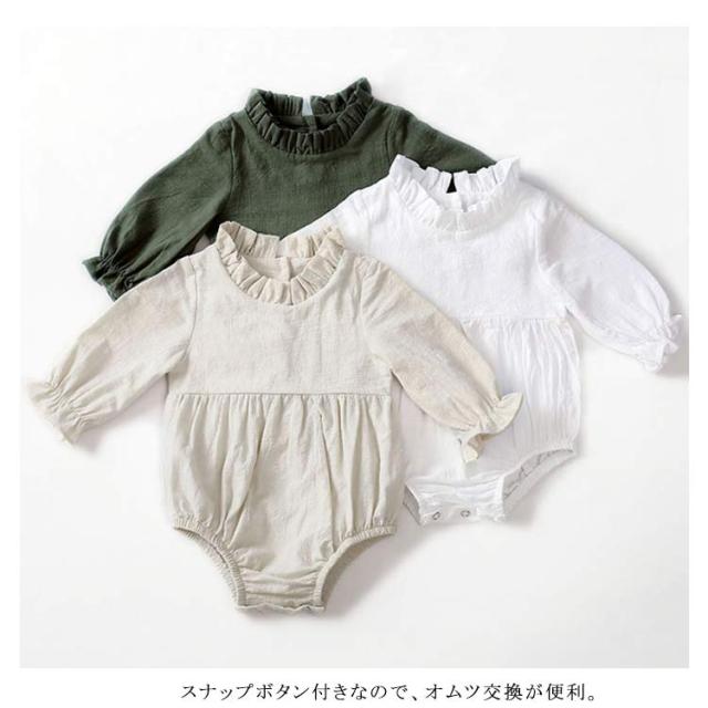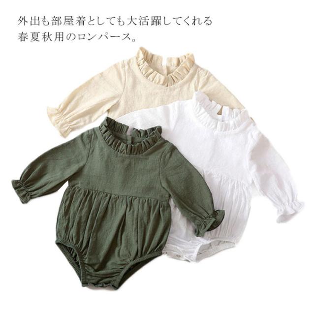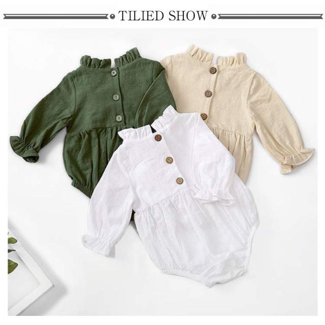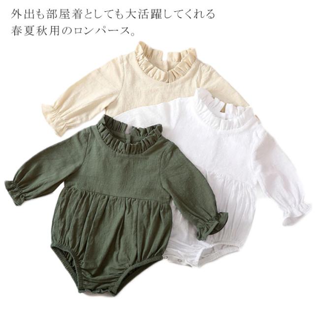 送料無料 ベビー服 ロンパース 新生児 女の子 長袖 フリル 無地 ボタン 赤ちゃん 子ども服 可愛い パジャマ ルームウエア 普段着 カバーオール 写真撮影 出産祝い プレゼント