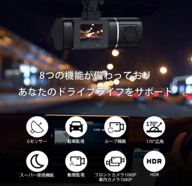 ドライブレコーダー 前後カメラ デュアル1080P+1080PフルHD