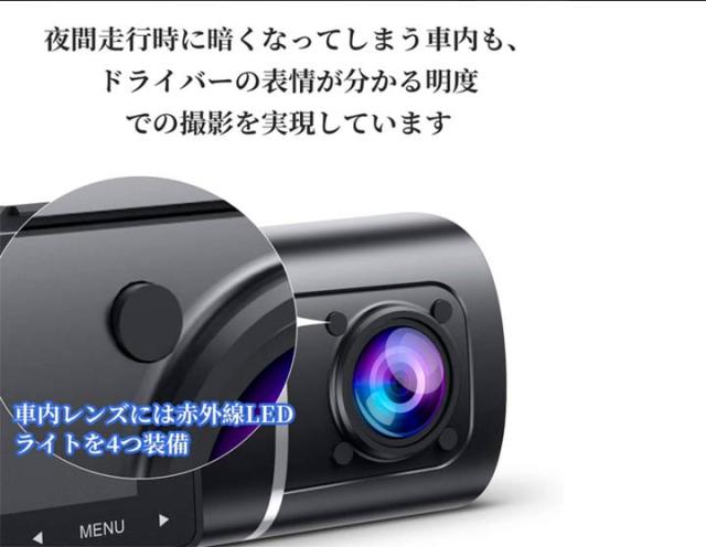 最新版ドライブレコーダー 前後カメラ デュアル1080P+1080PフルHD 前後同時録画 前170°後140°広角レンズ 4