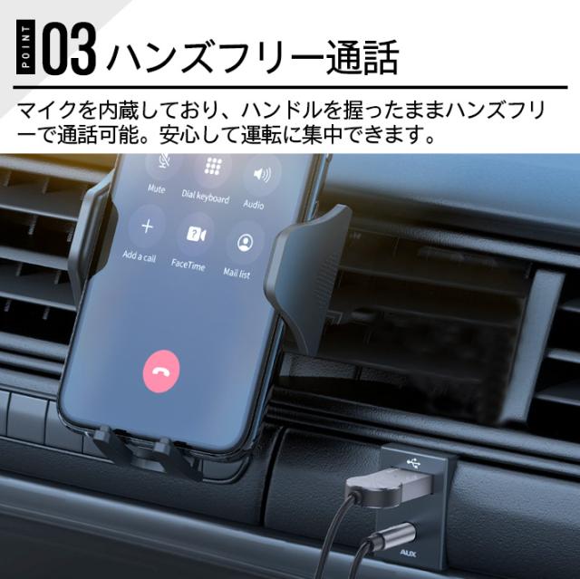 進化版 Bluetooth オーディオレシーバー スマホ ワイヤレス ハンズフリー通話 音楽再生 マイク内蔵 車載オーディオ