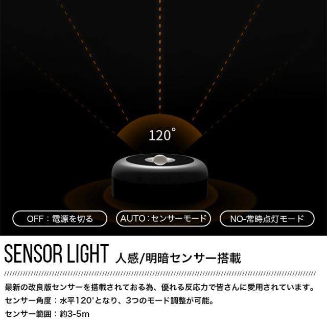 【人感/明暗センサー搭載】最新の改良版センサーを搭載されておる為、優れる反応力で皆さんに愛用されています。センサー範囲:約3-5m/センサー角度:水平120°となり、三つのモード調整可能ということです。OFF:電源を切る AUTO:センサーモード NO-常時点灯モードになります。 【最新の柔らかい光の設計】ランプシェードは均一な照度を持つ高品質のPC素材で作られています。LEDコンポーネントも見えないので、優しい光で眩しくありません。3000Kの電球色で目にやさしくて、夜中のトイレや赤ちゃんのおむつ替え、授乳などの時に、近くに寝ている人の睡眠を妨げにくくなります。