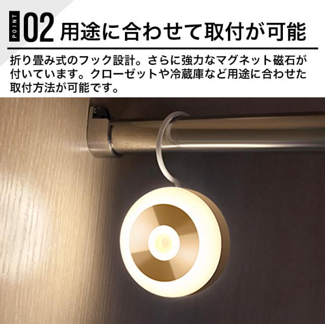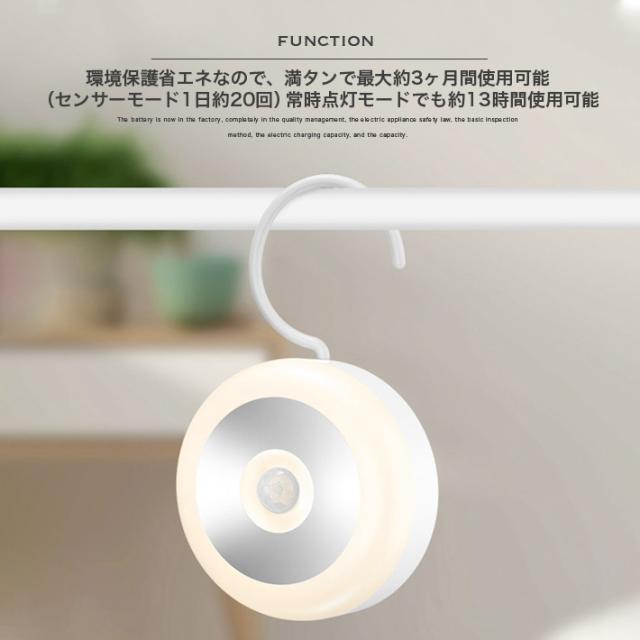 二個 進化版 フック付きLEDセンサーライト 充電式 マグネット 磁石付き ナイトライト 屋内 led照明 小型 常夜灯 玄関
