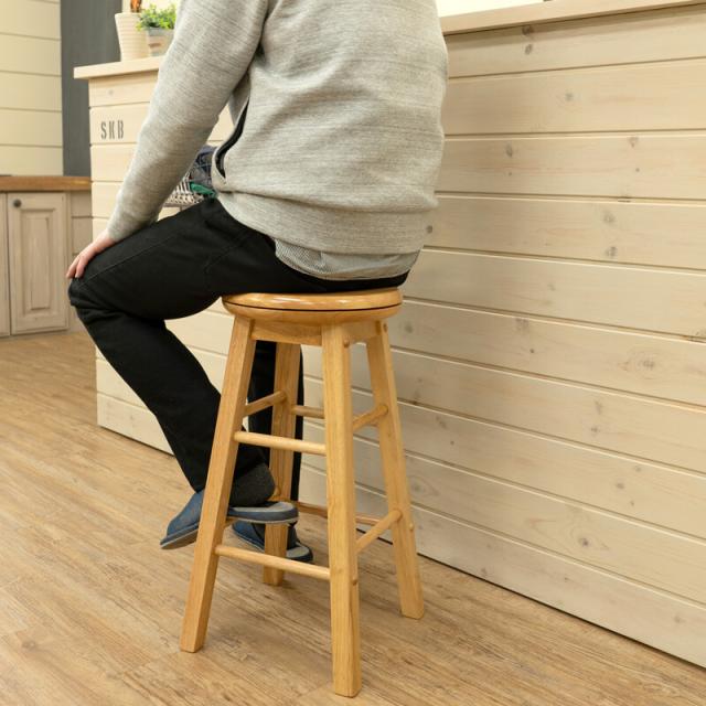 天然木を使用したナチュラルテイストの回転式バースツール。