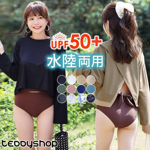即納 ラッシュガード レディース 長袖 おしゃれ フードなし トップス 体型カバー ビーチファッション 春 夏 秋 水陸両用 無地 シンプル スポーティー カジュアル 薄手 UV対策 ケガ防止 伸縮性 フィットネス アウトドア マリンスポーツ ヨガ 運動 普段着