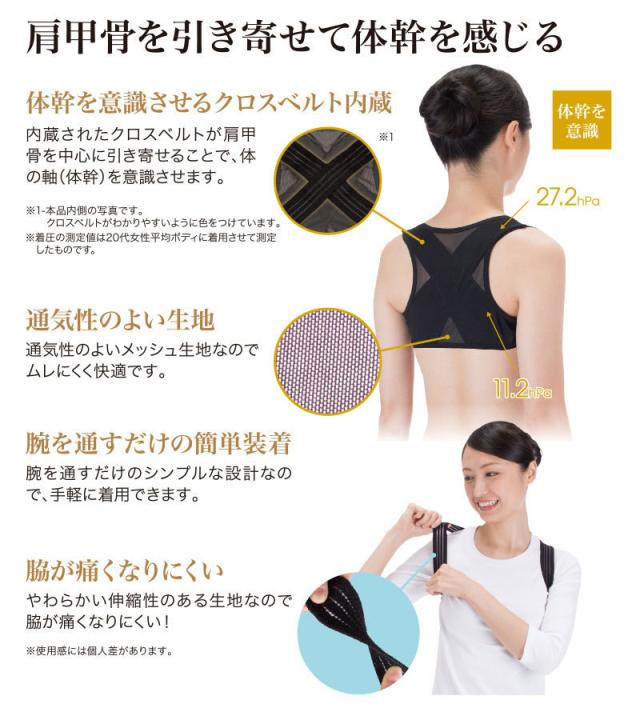 つけるだけで背筋ピン!肩甲骨を引き寄せて、きれいな姿勢をキープし、体幹を意識する!
