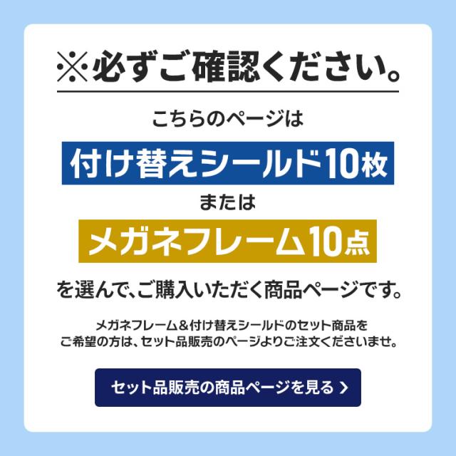 選べる!メガネ型フェイスシールドに使える【付け替えシールド10点】または【メガネフレーム10点】