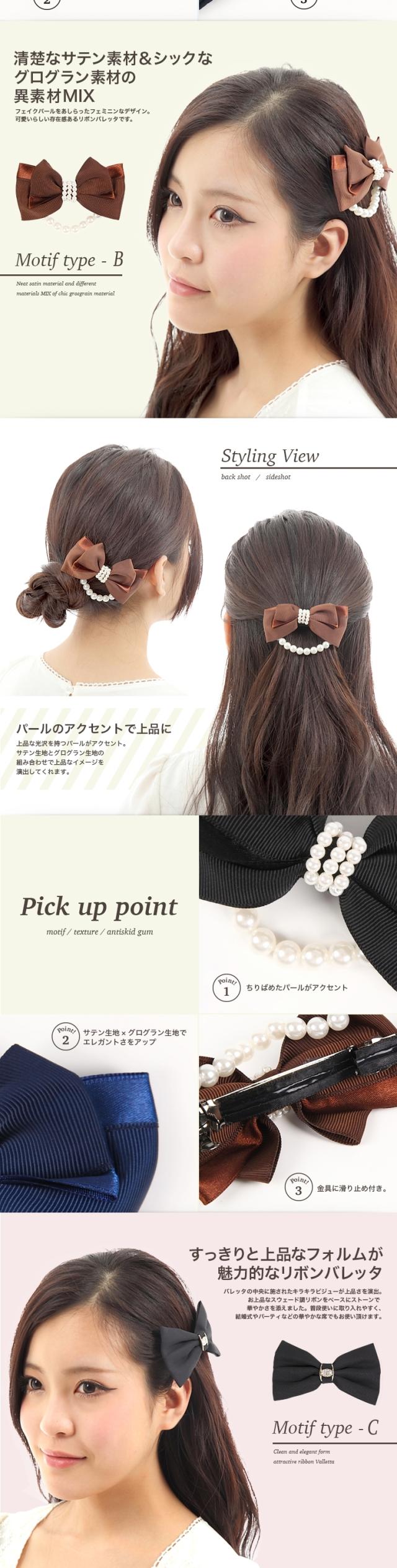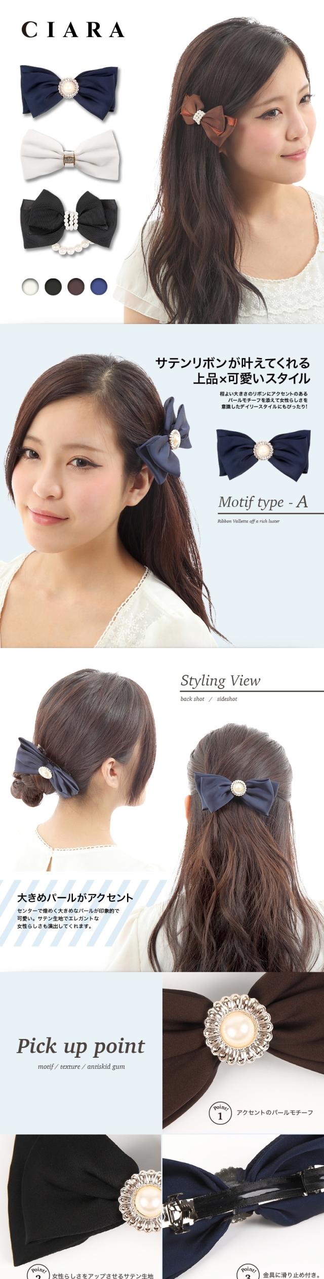 送料無料 バレッタ リボン パール ヘアアクセサリー