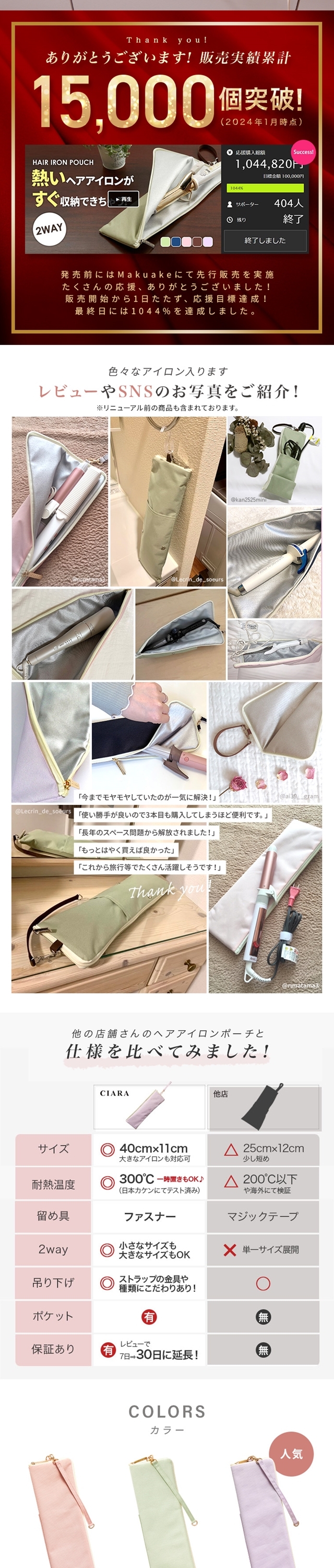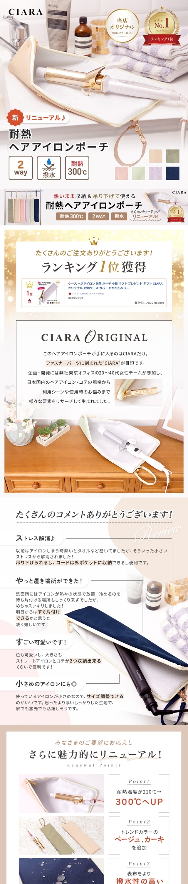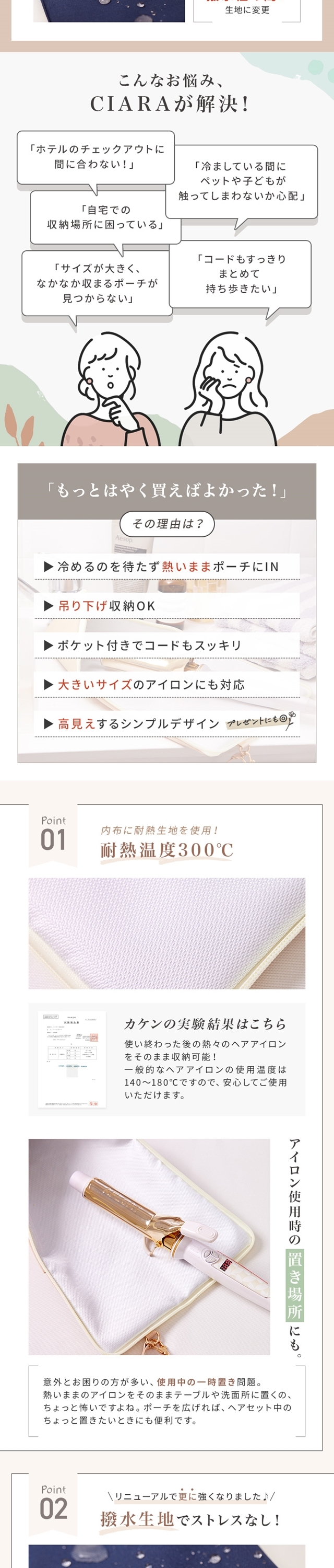 ポーチ 小物入れ ヘアアイロンポーチ ヘアアイロン コテ ヘアアイロンケース 300℃ 300度 春 夏 秋 冬 大人 お出掛け デイリー ギフト 旅行 旅行用 トラベル 出張 送料無料 新作 大きめ 小さめ プレゼント プチギフト 女性 女子 20代 30代 40代 50代 60代 バレンタインデー バレンタイン ホワイトデー お返し 母の日 父の日 新生活 敬老の日 クリスマス デート パーティー 彼女 福袋 セール お得 ポイント消化 即納 誕生日 ブランド お散歩 大学生 OL 会社員 かわいい おしゃれ 持ち歩き シンプル CIARAポーチ雑貨屋 シアラ OEM 大量注文 ノベルティ ネスリーフ 2025 遅れてごめんね