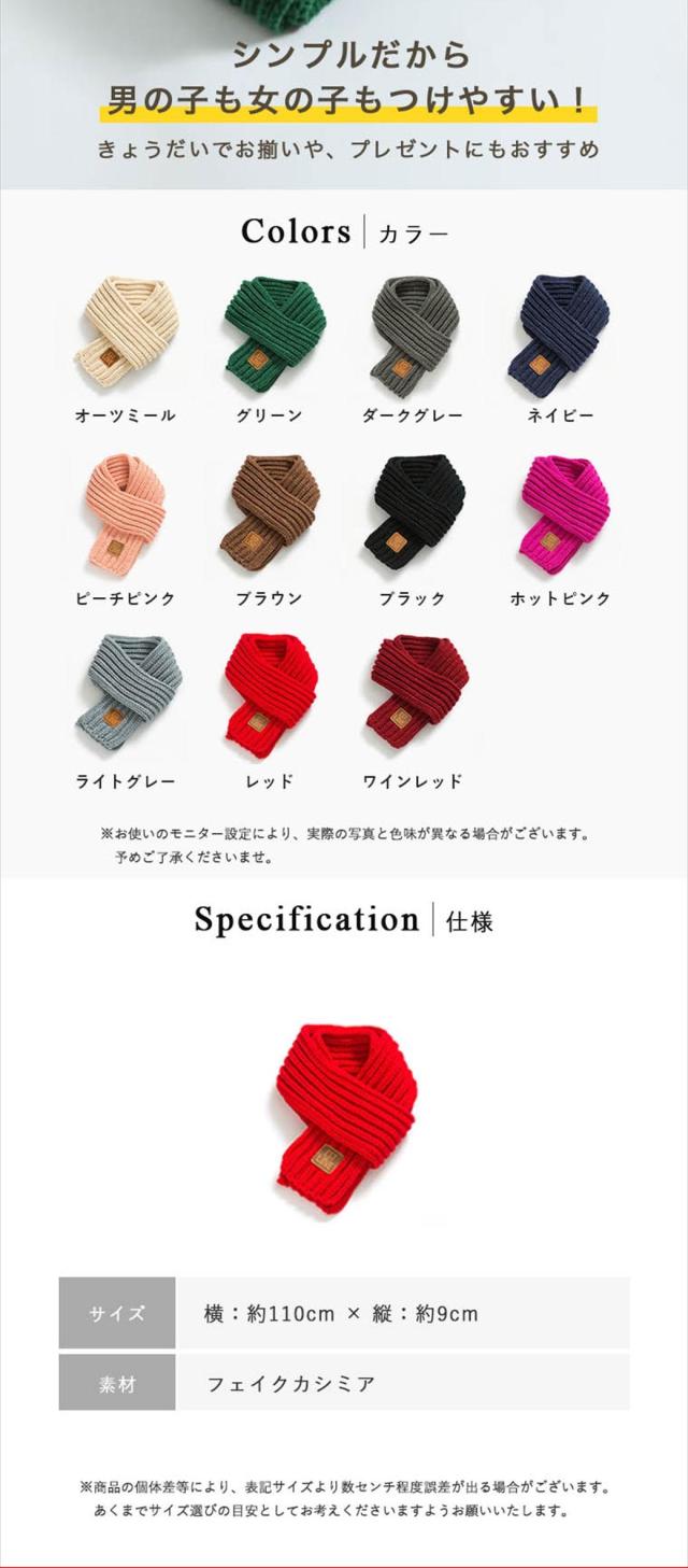 1000円ぽっきり マフラー キッズ ニット ベビー ネックウォーマー 子供 男の子 女の子 男女兼用 キッズ用 あったか 防寒 保温 おしゃれ 可愛い 幼児 フリーサイズ 小学生 プレゼント セール ポイント消化 送料無料 新作 ギフト 春
