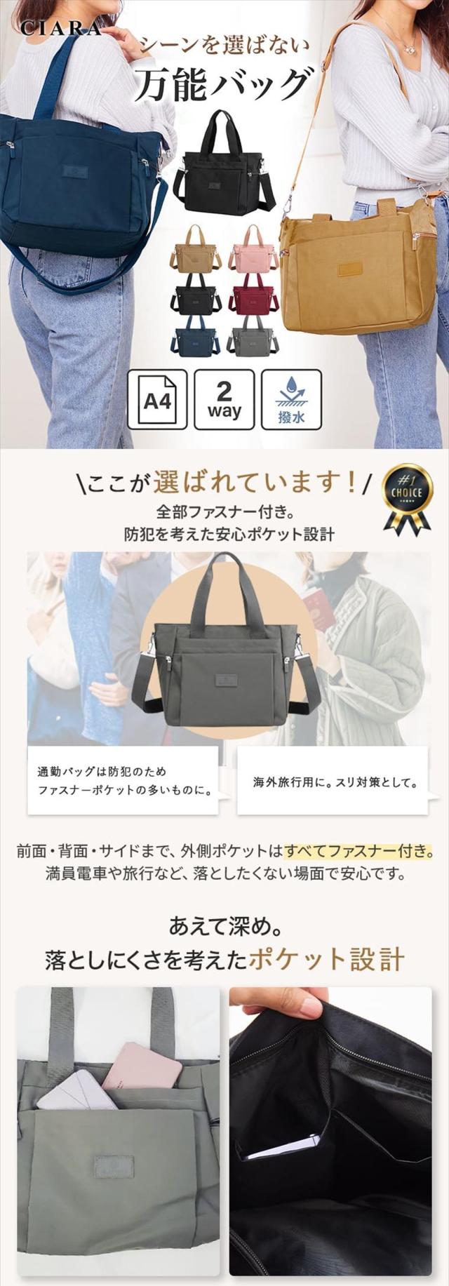 ショルダーバッグ レディース 斜めがけ 大容量 ブランド トートバッグ バッグ A4 2way 通勤 通学 軽量 軽い 大きめ ファスナー ナイロン 30代 40代 50代 60代 可愛い ポケット マザーズバッグ 旅行 出張 送料無料 新作 防花粉 花粉対策 ギフト 春