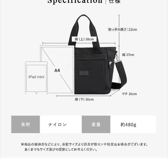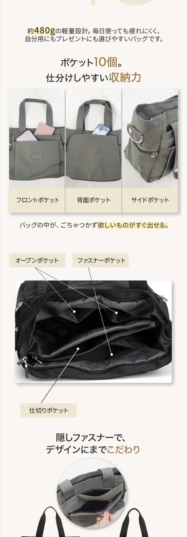 - 注文してから即日発送いただき、早く手元に届いてくれました! 梱包サイズが小さかったのに、バックはしっかり大容量★ 中に収納込みの間仕切りがあるのも使い勝手◎