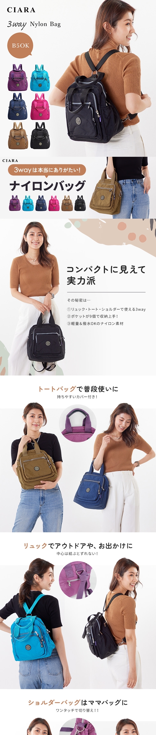 バッグ レディース デイバッグ ナイロン リュック ミニリュック トートリュック リュックサック B5 トートバッグ ショルダーバッグ 斜め掛け 肩掛け クロス掛け ママバッグ マザーズバッグ 旅行バッグ 無地 シンプル メンズ ユニセックス 大容量 自立 ファスナー付き チャック付き 多収納 軽い 軽量 収納 実用性 丈夫 小さめ 大人 女性 たっぷり 使いやすい 多機能 高性能 ポケット ファスナー 旅行 ビジネス デイリー 仕事 オフィス 通勤 通学 出張 トラベル 持ち歩き 女子 大学生 ママ OL 会社員 20代 30代 40代 50代 60代 70代 80代 小学生 中学生 高校生 林間学校 学童 かわいい 可愛い おしゃれ きれいめ 高見え カジュアル 子供 キッズ 男の子 女の子 バレンタインデー ホワイトデー お返し 母の日 クリスマス 誕生日 新生活 カジュアルバッグ 自転車通勤 旅行用 速乾 ハイキング レジャー フェス フェスバッグ 贈り物 プレゼント プチギフト ギフト 福袋 セール お得 新作 ポイント消化 CIARAポーチ雑貨屋 シアラ OEM 大量注文 ネスリーフ 2025 送料無料