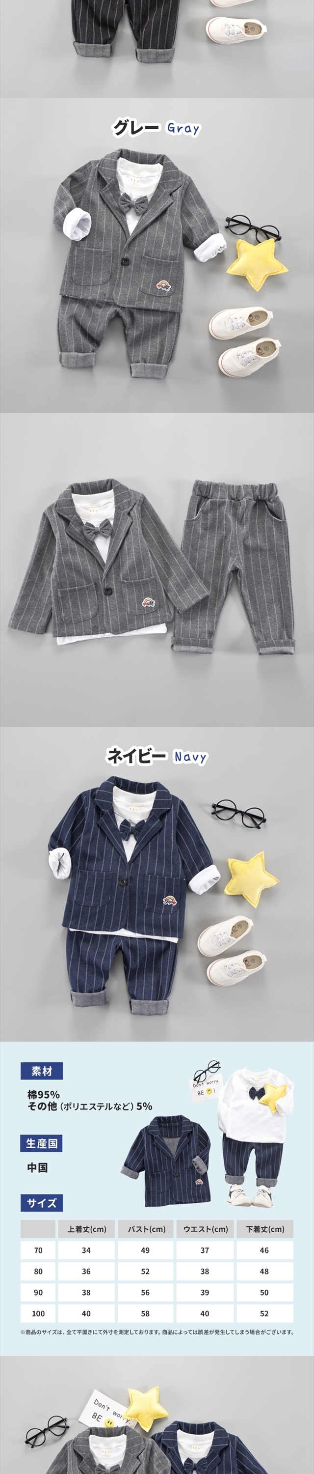 子供服 男の子 子供 キッズ フォーマル スーツジャケット ベビー 赤ちゃん 新生児 未使用 セレモニースーツ セレモニー 子供スーツ フォーマルスーツ3点セット 上下セット 入園式 卒園式 入学式 結婚式 フォトウエディング 発表会 お祝い誕生祝い 誕生日 こどもの日 パーティ 記念 七五三 100日祝い 百日祝い お宮参り 初節句 ベビー服 バレンタイン70cm 80cm 90cm 100cm ブラック ネイビー グレー 黒 青 灰色 可愛い お揃い 撮影 年賀状 保育園 幼稚園プレゼント ギフト プチギフト プレゼント交換 福袋 ホワイトデー お返し 新生活 セール お得 ポイント消化 送料無料 新作CIARAポーチ雑貨屋 シアラ OEM 大量注文 ネスリーフ 2025