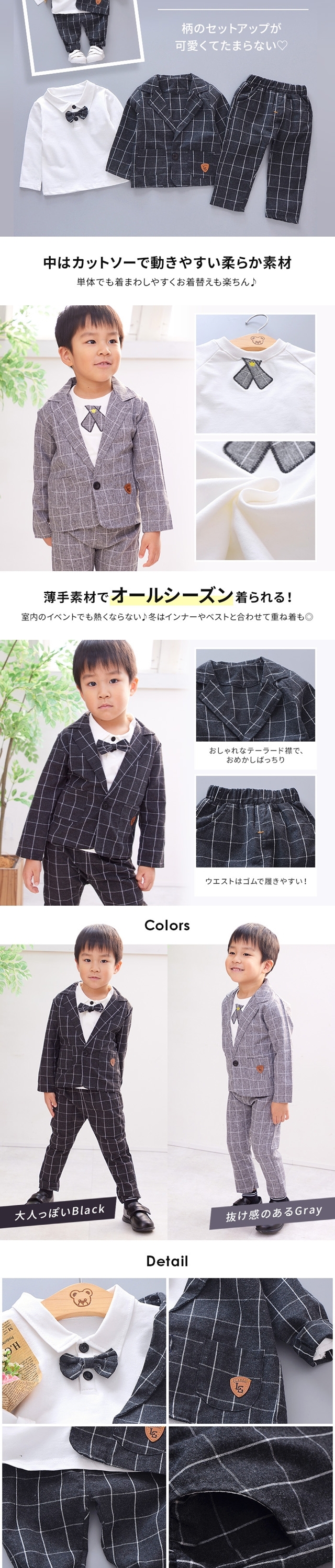 70cm 80cm 90cm 100cm ブラック ネイビー グレー 黒 青 灰色 可愛い お揃い 撮影 年賀状 保育園 幼稚園