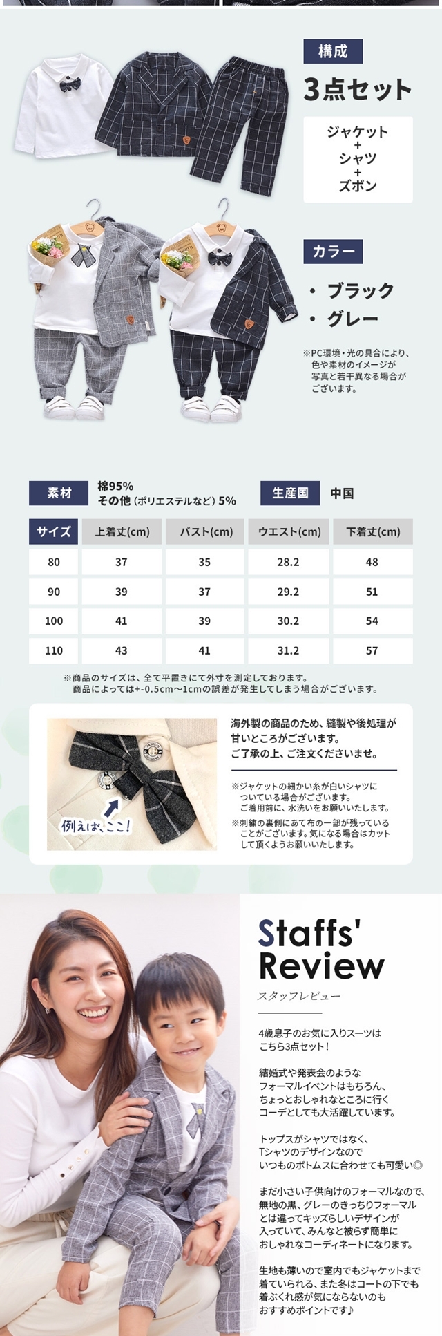- 中々 七五三のお参りにも行けないので 何時でも時間ある時にスーツ在れば 神社に行って写真位は撮りたいだろうと 購入しました 少し薄いけど 着やすそうな感じです お参りに行けると良いですね〜 レビュープ...
