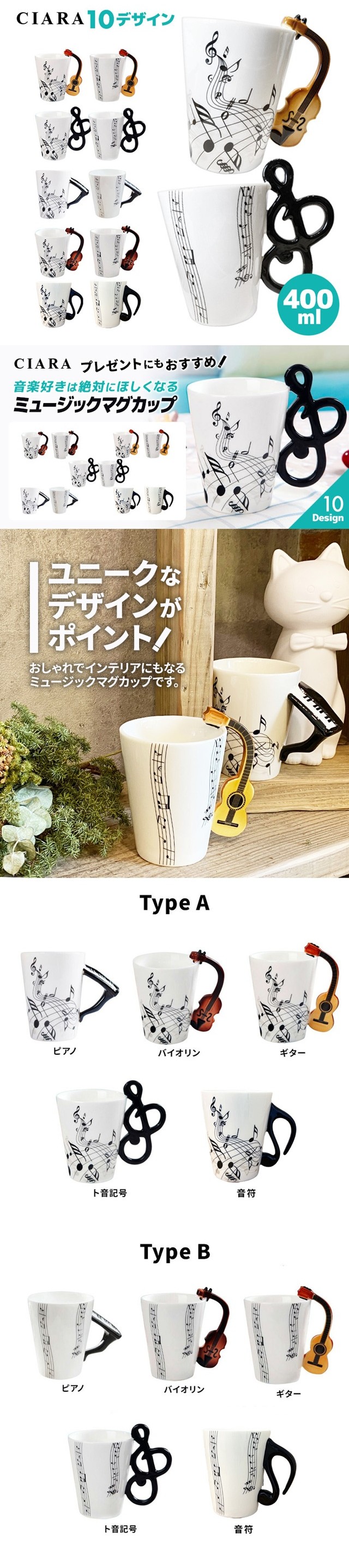 マグカップ おしゃれ プレゼント 大きい 安い 400ml ピアノ バイオリン ギター ド音記号 ミュージック 音楽 送料無料 新作 プレゼント 音楽 カップ かわいい 即納 ギフト 春