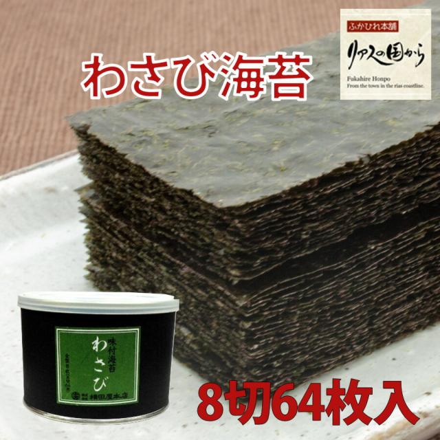 味付け海苔 横田屋本店 わさび海苔 わさびがたまらない味付け海苔 全形8枚(8切64枚入)気仙沼 のり 三陸より海の恵 わさび海苔