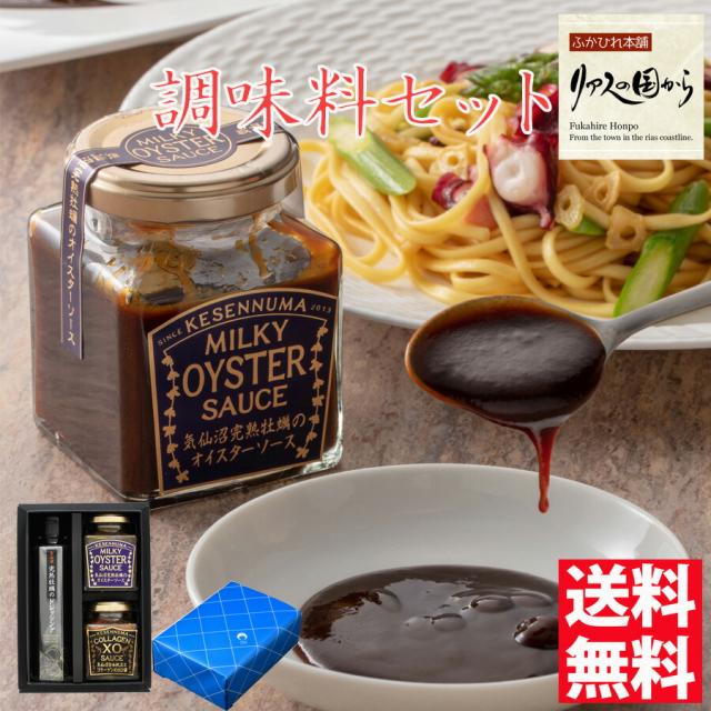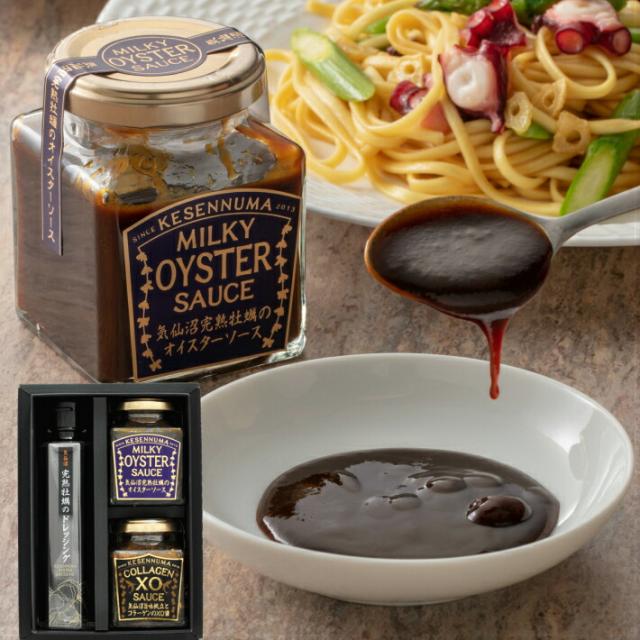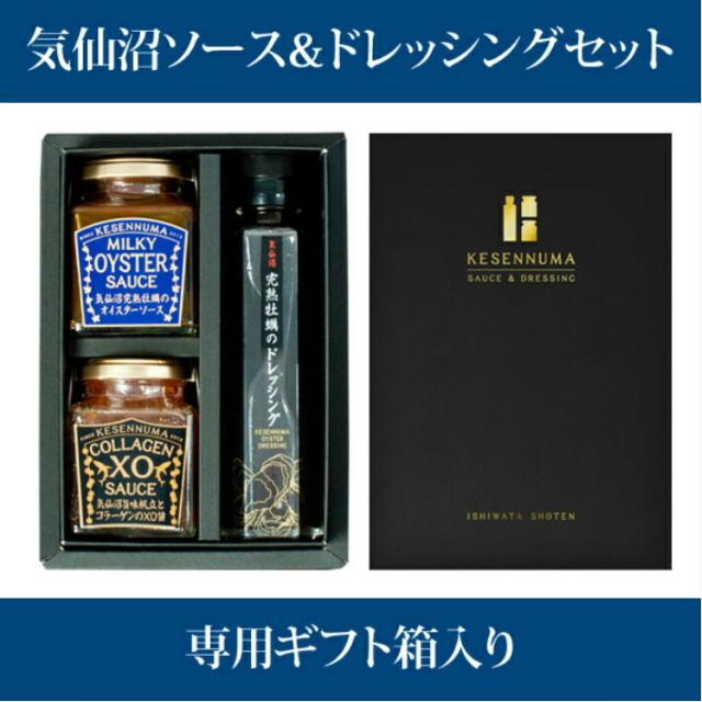 気仙沼ソース&ドレッシングセット ギフト箱入り(気仙沼完熟牡蠣のオイスターソース、気仙沼完熟牡蠣のドレッシング、三陸旨味帆立とコラーゲンのxo醤)