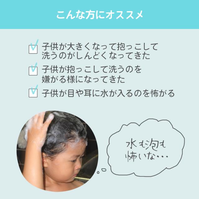 ・シャンプーのすすぎ湯が目に入って嫌がるお子様でもしっかり防いで快適に洗えます